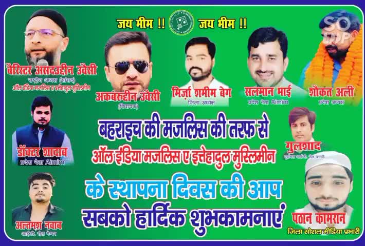 बहराइच: एम आई एम पार्टी के स्थापना दिवस की हार्दिक शुभकामनाएं।