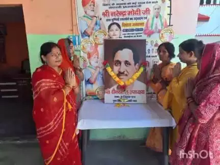 भारतीय जनसंघ के संस्थापक पंडित दीनदयाल उपाध्याय के जयंती के अवसर पर गुरुवार को 11 बजे भारतीय जनता पार्टी महिला मोर्चा जिलाध्यक्ष चांदनी सिंह के नेतृत्व में महिला मोर्चा के कार्यालय में उनके तैल चित्र पर पुष्पांजलि और माल्यार्पण कर नमन किया गया। इस अवसर पर बीजेपी कार्यकर्ताओं द्वारा अपने अपने घर पर भारतीय जनता पार्टी का झंडा लगाया गया।