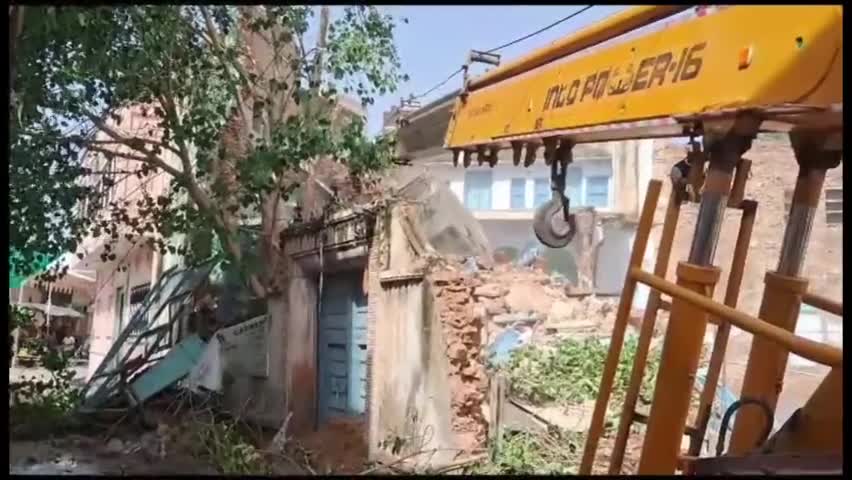 बीदासर: खतरे को देखते हुए पालिका प्रशासन ने मण्डी बाजार स्थित बंद हवेली का बाकी का हिस्सा भी गिराया