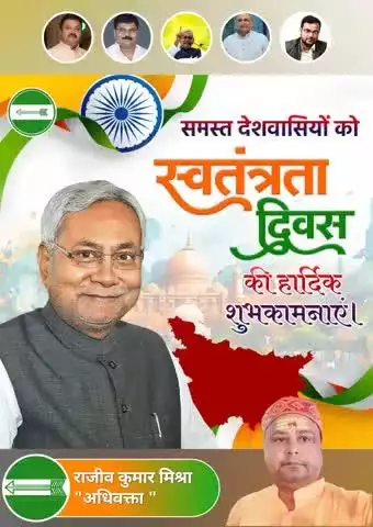 आप सभी देशवासियों को 79वें स्वतंत्रता दिवस की हार्दिक शुभकामनाएं! आइए आज हम सब मिलकर उन वीरों को नमन करें जिन्होंने अपने बलिदान से हमें आज़ादी दिलाई, और संकल्प लें कि एक मज़बूत, समृद्ध और एकजुट भारत के निर्माण में अपना योगदान देंगे!🙏🙏