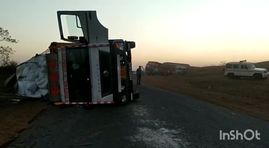 रामा: माछ्लीया घाट डुंगलापानी के टर्न पर पलटा ट्राला, ड्राईवर क्लीनर हुए घायल
