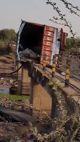 खण्डवा #जसवाड़ी के पास #पुल से #टकराया ट्रक