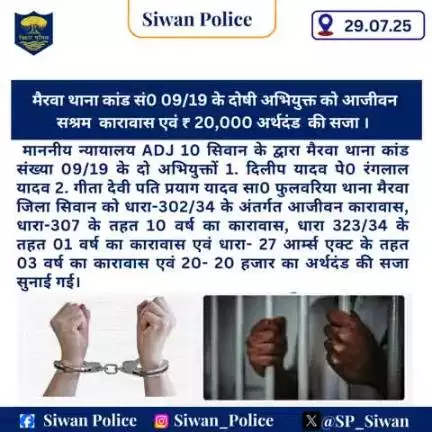 मैरवा थाना कांड सं0 09/19 के दोषी अभियुक्तों को आजीवन कारावास एवं अर्थदंड की सजा