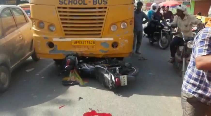 स्कूल बस वा मोटरसाइकिल की जोरदार टक्कर