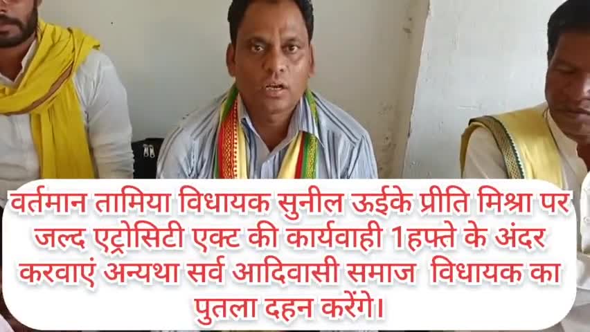 तामिया के वर्तमान विधायक सुनील उईके जी प्रीति मिश्रा के ऊपर St/Sc एक्ट 1 हफ्ते के अंदर कायम करवाएं अन्यथा पुतला दहन होगा