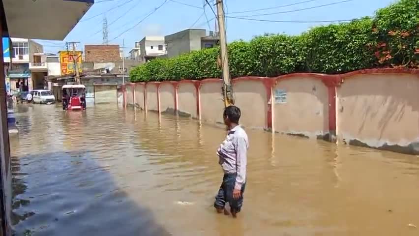 रावतसर : कस्बे में भारी वर्षा के बाद बाजार का मौका–मुआयना करते पीलीबंगा विधानसभा क्षेत्र के विधायक धर्मेंद्र मोची।