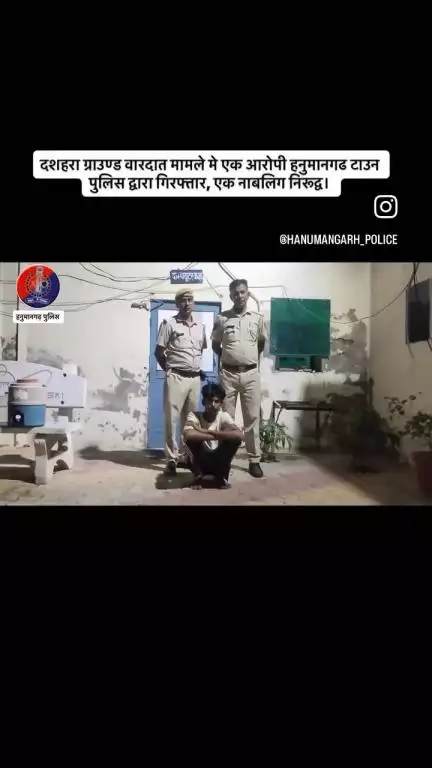 दशहरा ग्राउण्ड वारदात मामले मे एक आरोपी हनुमानगढ टाउन पुलिस द्वारा गिरफ्तार, एक नाबलिग निरूद्व।