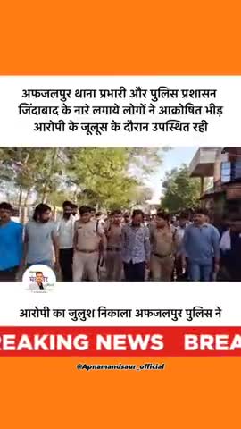 अफजलपुर थाना प्रभारी और पुलिस प्रशासन जिंदाबाद के नारे लगाये लोगों ने आक्रोषित भीड़ आरोपी के जूलूस के दौरान उपस्थित रही #mandsaurnews #brekingnews #mandsaurcity #news #newsupdate #shop #mandsaur . . Daliy News Update Follow 🫶@mandsaur_vlog . . #mandsaur #brekingnews #news #mandsaurnews #mandsaurcity #Mandsaur
