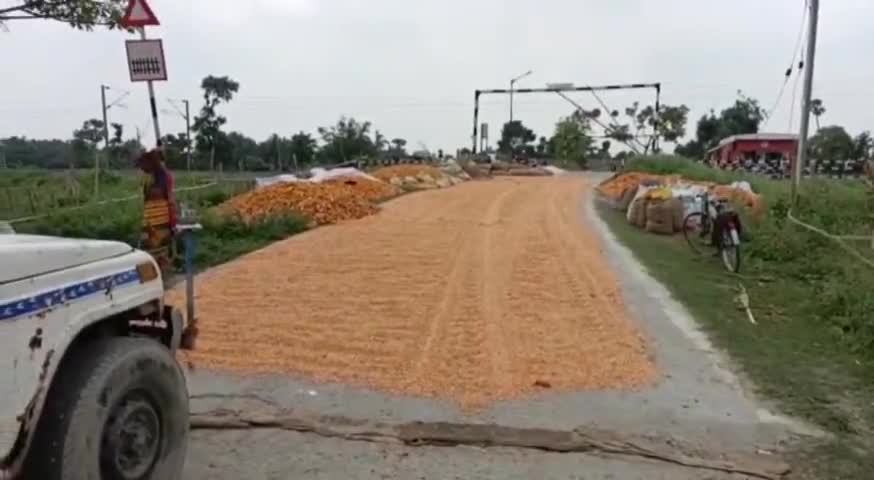 बरारी: प्रखंड क्षेत्र की सड़कों पर सुखाई जा रही मक्का, हादसे का रहता डर