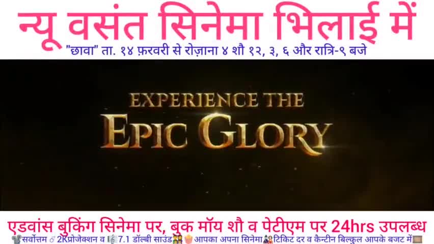 न्यू वसंत सिनेमा भिलाई में "छावा" ता. १४ फ़रवरी से रोज़ाना ४ शौ १२, ३, ६ और रात्रि-९ बजे 💶डायमंड=150/-💵गोल्डन=100/-मात्र