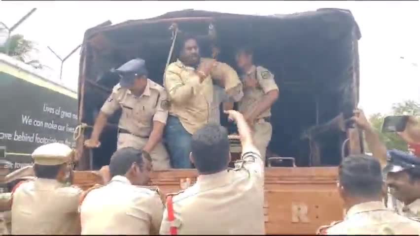 భీమిలి: రిషికొండ గీతం యూనివర్సిటీ కళాశాల ప్రాంగణంలో జనసేన భీమిలి ఇంఛార్జి సందీప్ను అడ్డుకున్న పోలీసులు