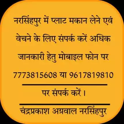 नरसिंहपुर में मकान प्लॉट लेने एवं वेचने के लिए संपर्क करें 7773815608