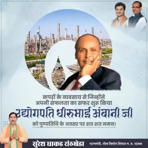 कपड़ों के व्यवसाय से जिन्होंने अपने सफलता का सफर शुरू किया उद्योगपति धीरूभाई अंबानी जी की पुण्यतिथि पर शत् शत् नमन।
