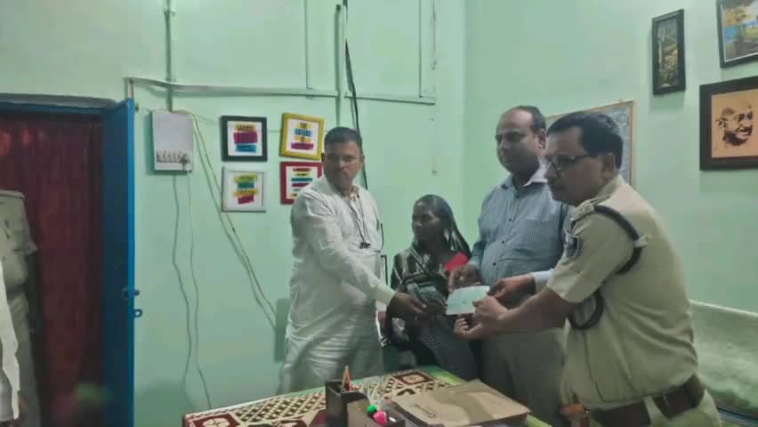 वज़ीरगंज: वजीरगंज सीओ पुरुषोत्तम कुमार ऩे पीड़ित क़े आश्रित पत्नी कांति देवी क़ो दिया चार लाख का चेक़