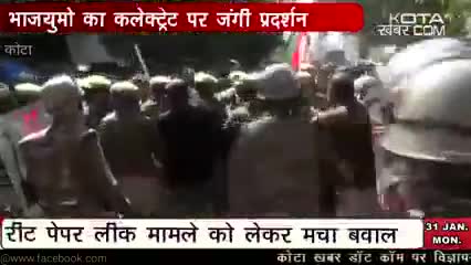 रीट परीक्षा में हुई धांधली को लेकर भाजपा युवा मोर्चा कोटा शहर का कलेक्टर पर सीबीआई जांच को लेकर प्रदर्शन