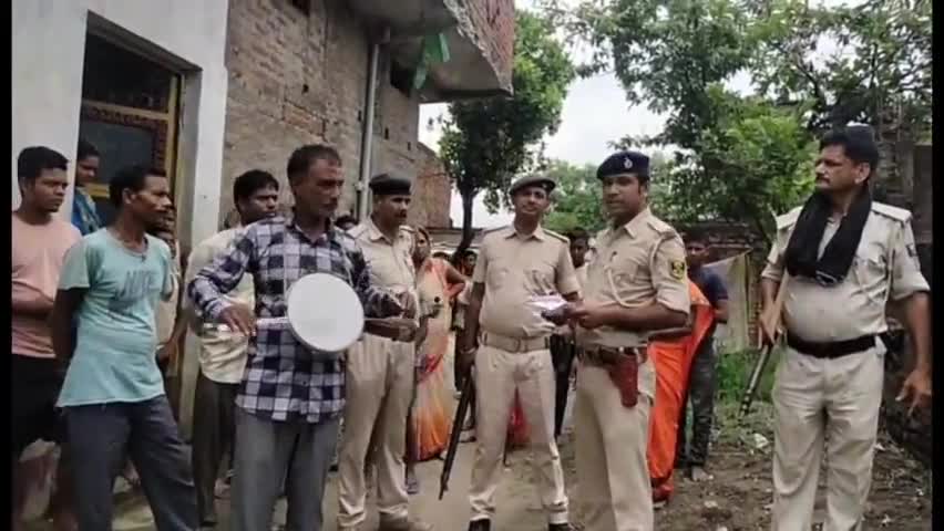 भोरे: डुगडुगी बजाकर भोरे पुलिस ने रामनगर निवासी हत्यारोपी के घर पर चस्पा किया इश्तेहार