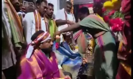 సూర్యాపేట జిల్లా ఆత్మకూరు ఎస్ మండలంలోని నెమ్మికల్లులో శ్రీ దండు మైసమ్మ తల్లి ద్వితీయ వార్షికోత్సవ సందర్భంగా ఏఐసీసీ సభ్యులు రామ్ రెడ్డి సర్వోత్తమ్ రెడ్డి సూర్యాపేట వ్యవసాయ మార్కెట్ కమిటీ చైర్మన్ కొప్పుల వేనారెడ్డి ఆదివారం ప్రత్యేకమైన పూజలను నిర్వహించారు. దండు మైసమ్మ తల్లి ఆశీస్సులు సూర్యాపేట ప్రాంత ప్రజలందరికీ ఉండాలని రైతులు పాడిపంటలతో పశువు సంపదతో వర్ధిల్లాలని ఆకాంక్షించారు. అనంతరం అర్చకులు వారిని ఆశీర్వదించి తీర్థప్రసాదాలను అందించారు. ఈ కార్యక్రమంలో ఆలయ చైర్మన్ కరుణాకర్ రెడ్డి భక్తులు కాంగ్రెస్ నాయకులు తదితరులు పాల్గొన్నారు.
