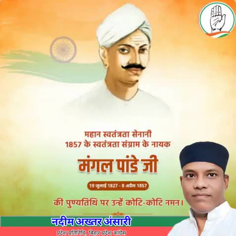 प्रथम भारतीय स्वतंत्रता संग्राम के महान क्रांतिकारी मंगल पांडे जी की पुण्यतिथि पर उन्हें विनम्र श्रद्धांजल