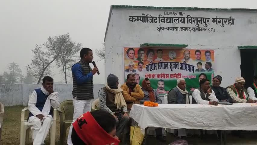 कांग्रेस के संगठन सृजन मीटिंग में कार्यकर्ताओं के बीच अपनी बात रखते हुए