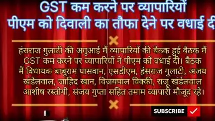 पूरनपुर मैं हंसराज गुलाटी की अगुआई मैं व्यापारी की बैठक मैं GST कम करने पर पीएम को दिवाली का तौफा देने पर वधाई दी।