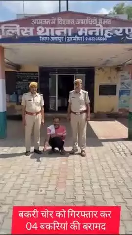 थाना #मनोहरपुर ने बकरी #चोर को गिरफ्तार कर कब्जे से चार बकरियां बरामद कर घटना में प्रयुक्त वाहन पिकअप गाडी को किया जप्त।