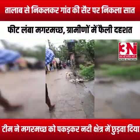 तालाब से निकलकर गांव की सैर पर निकला सात फीट लंबा मगरमच्छ, ग्रामीणों में फैली दहशत