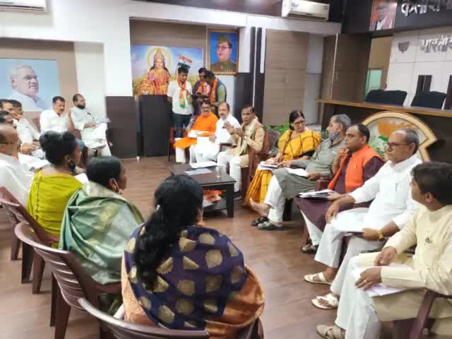 पटना में भाजपा कार्यालय में एक बैठक के दौरान