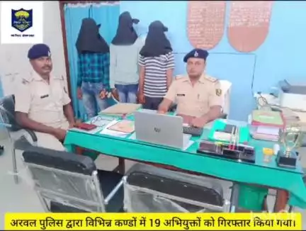 अरवल पुलिस द्वारा विशेष अभियान चलाकर 19 अभियुक्तों को गिरफ्तार कर न्यायिक हिरासत में भेजा गया।
