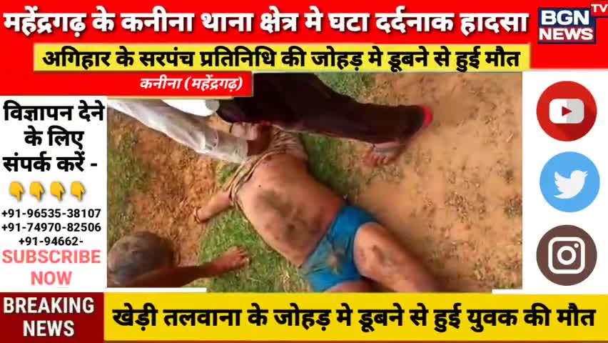 Mahendergarh News :अगिहार गाँव के युवक की जोहड़ मे डूबने से हुई मौत | साथी को बचाने को उतरा था जोहड़ मे | #Kanina_news