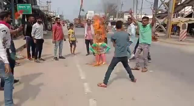 पेट्रोल डीजल में मूल्यवृद्धि को लेकर चारामा में मोदी सरकार का पुतला दहन