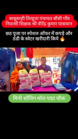 लदनियाँ:- छठ पूजा पर बाबूबरही प्रखंड के तिरहुता पंचायत बौंसी गाँव निवासी कपड़े एवं ठंडी के स्वेटर स्पेशल ऑफर में खरीदारी