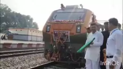औरैया: दिबियापुर के फफूंद रेलवे स्टेशन पर पहुंची अमृत भारत एक्सप्रेस, चेयरमैन राघव मिश्रा ने दिखाई हरी झंडी