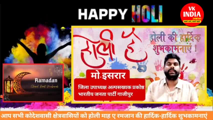 मो. इसरार जिला उपाध्यक्ष अल्पसंख्यक प्रकोष्ठ भारतीय जनता पार्टी की तरफ से होली और माहे रमजान की ढेर सारी शुभकामनाएं बधाई