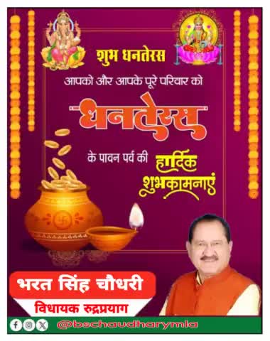 आप सभी को धनतेरस पर्व की हार्दिक बधाई एवं शुभकामनाएं। भगवान धनवंतरि से कामना करता कि आप सभी का जीवन सुख, समृद्धि, और खुशहाल बनें।