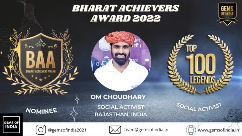 धन्यवाद GEMS Of INDIA (BAA-2022) भारत अचीवर्स अवार्ड 2022 के लिए।