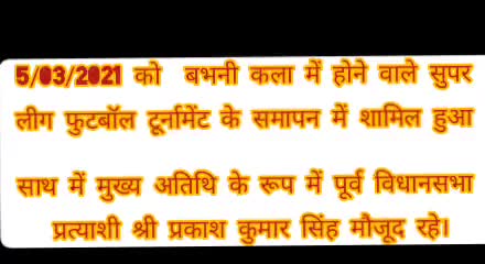 5/03/2021 को बभनी कला में होने वाले सुपर लीग फुटबॉल टूर्नामेंट के समापन में मुख्य अतिथि प्रकाश_सिंह के साथ शामिल हुए।