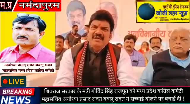 शिवराज सरकार के मंत्री गोविंद सिंह राजपूत को म.प्र कांग्रेस कमेटी महासचिव अयोध्या प्रसाद रावत ने सच्चाई बोलने पर बधाई दी