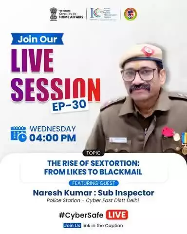 इस बुधवार के #CyberSafeLive पर मिलिए श्री नरेश कुमार (सब-इंस्पेक्टर, साइबर ईस्ट ज़िला, दिल्ली) से — जिन्होंने हाल ही में कुछ अहम केस सुलझाए हैं।
