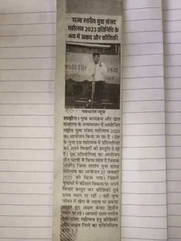नव युवा अक्षय केवट जी राज्य स्तरीय युवा सांसद महोत्सव में दूसरा स्थान प्राप्त कर अपने गांव Shadora का नाम रोशन किया