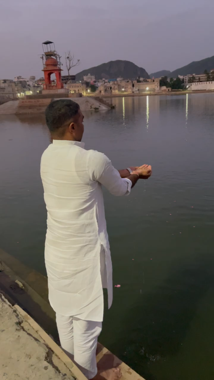 अजमेर जिले के पुष्कर में पवित्र सरोवर में पूजा अर्चना की