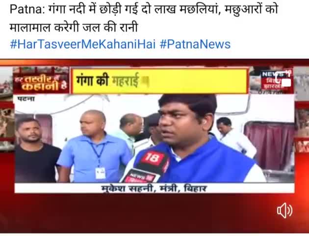 मतस्य मंत्री मुकेश सहनी दुआर गंगा नदी मे 2 लाख मछली डाले गये