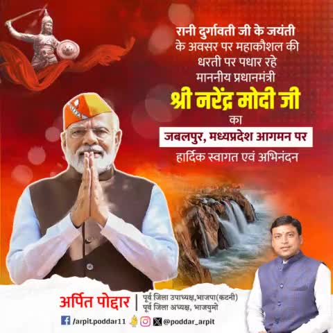 रानी दुर्गावती जी की जयंती अवसर पर महाकौशल की धरा पधार रहे विश्व के सर्वाधिक लोकप्रिय नेता, देश के यशस्वी प्रधानमंत्री माननीय श्री @narendramodi जी का हार्दिक स्वागत एवं अभिनंदन💐