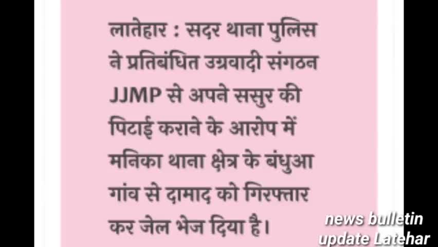 लातेहार: लातेहार : उग्रवादी संगठन JJMP से ससुर की पिटाई कराने के आरोप में दामाद गिरफ्तार , जेल @adityaltr01