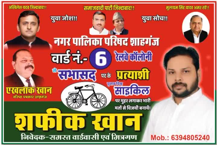 शफीक खान सभासद प्रत्याशी वार्ड नंबर 6