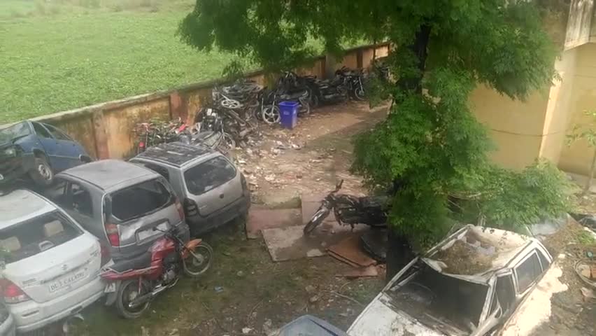 कस्बा खानपुर थाना मे लावारिस सीज वाहनों की दुर्दशा क्षतिग्रस्त वाहन प्रशासन की तरफ से कोई नीलामी कार्रवाई नहीं