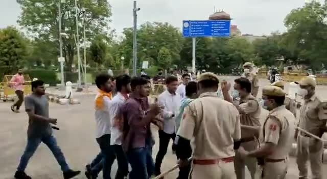 :-आज ABVP द्वारा राजस्थान विश्वविद्यालय के मुख्य द्वार पर स्टेनोग्राफर भर्ती में गड़बड़ी को लेकर विरोध प्रदर्शन।
