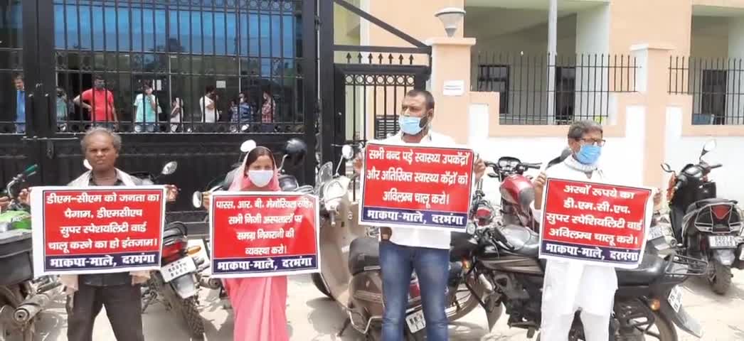 डीएमसीएच बचाओ जनस्वास्थ्य अभियान के तहत डीएमसीएच में व्याप्त कुव्यवस्था के खिलाफ भाकपा माले कार्यकर्ताओं का प्रदर्शन।