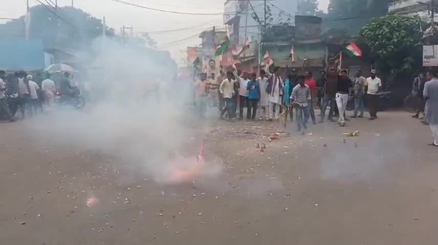 जामताड़ा: जामताड़ा में कांग्रेसियों ने आतिशबाजी कर मनाया जश्न