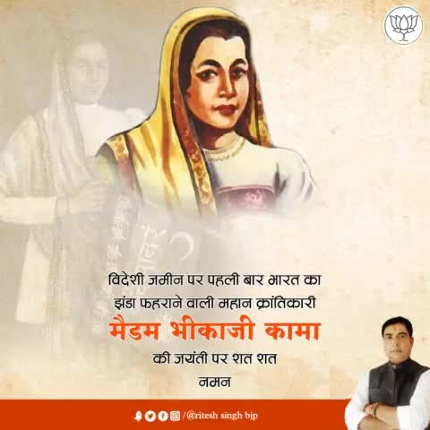 महान भारतीय क्रान्तिकारी भीकाजी रुस्तम कामा 'मैडम कामा' जी की जयन्ती पर शत्-शत् नमन।