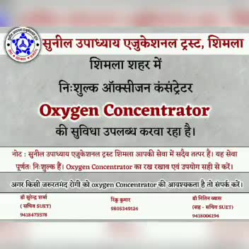 शिमला शहरी: @suetrustshimla शिमला में उपलब्ध कराएगी निःशुल्क ऑक्सीजन कंसट्रेटर |
